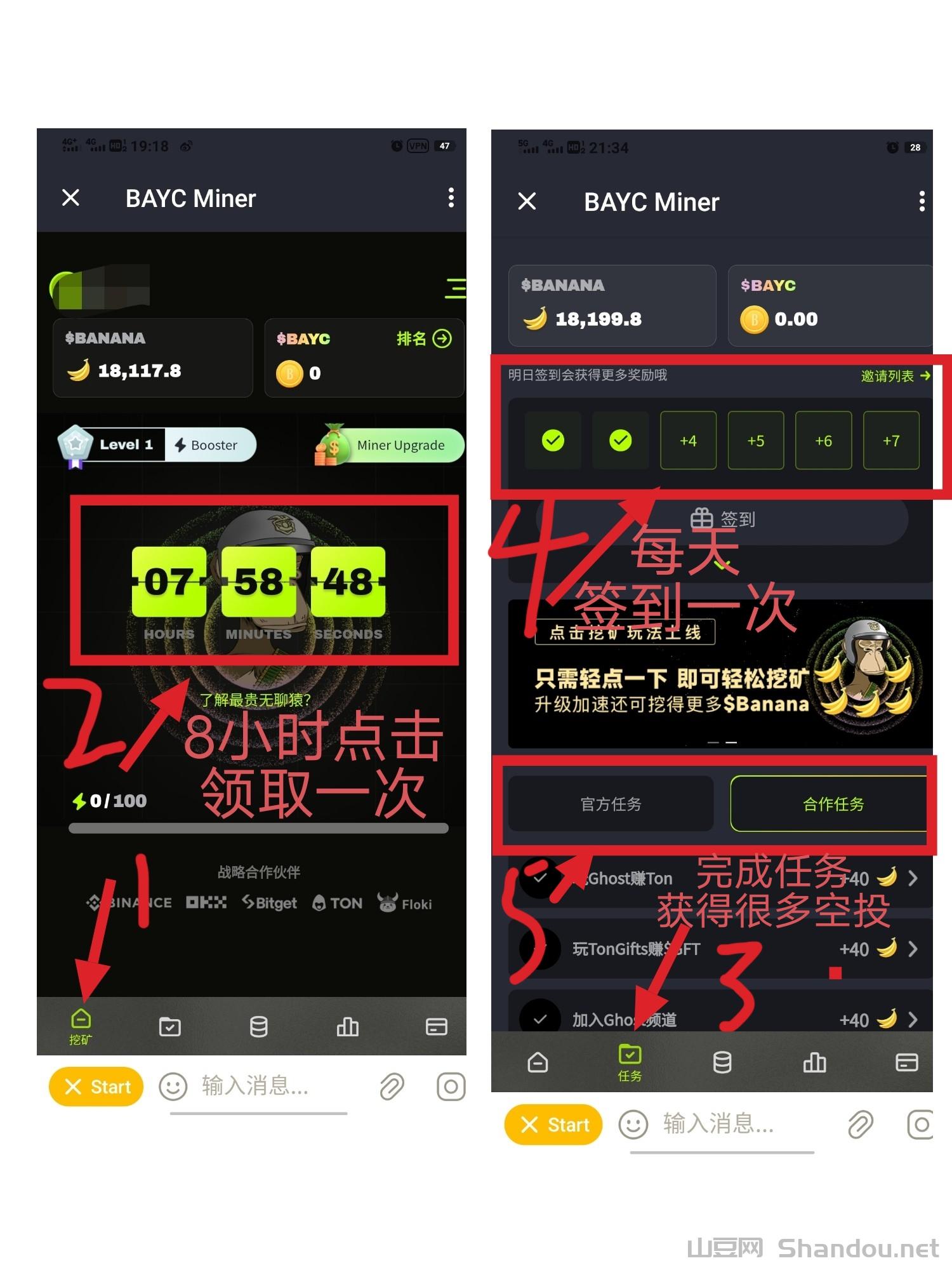签到链接(开加速器复制浏览器打开跳转到电报领取):https://t.me/baycminer/bayc?startapp=D5VYRG7GRFTMIPKV–