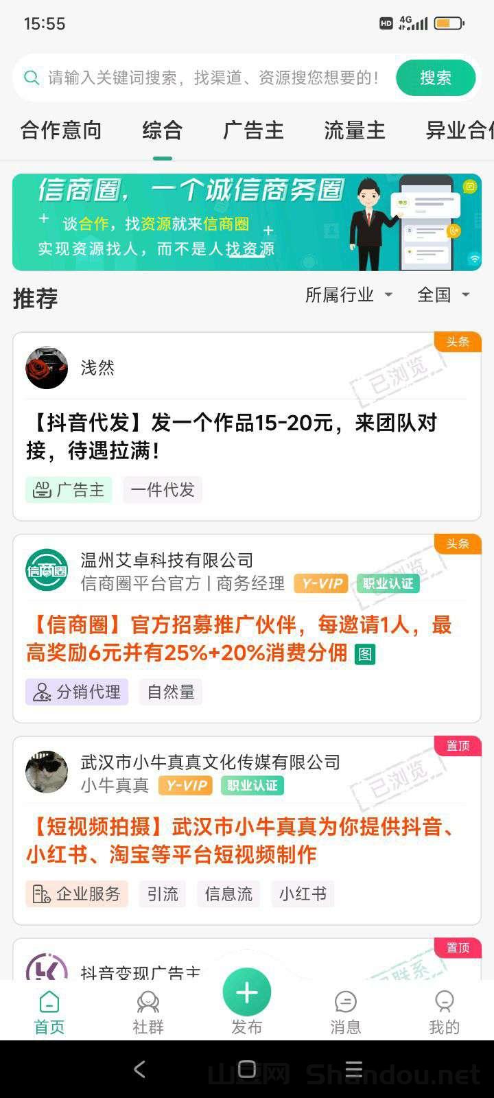 正文 信商圈,发项目找项目,推一人得18米,已提 AR项目网 V管理员 /01-21/41阅读/0评论 0121 信商圈,发项目找项目,大流量,每邀一人最高奖励6元+佣金,免费发广告,都是活人浏览曝光效果好,可自用可推广,开年卡赠送50张置顶卡和50张刷新+每天免费刷新10次+消费5折+送核心代理。推广奖励最高:下级注册登录奖励3元,查看联系方式奖励6元,发布资源信息奖励9元。
