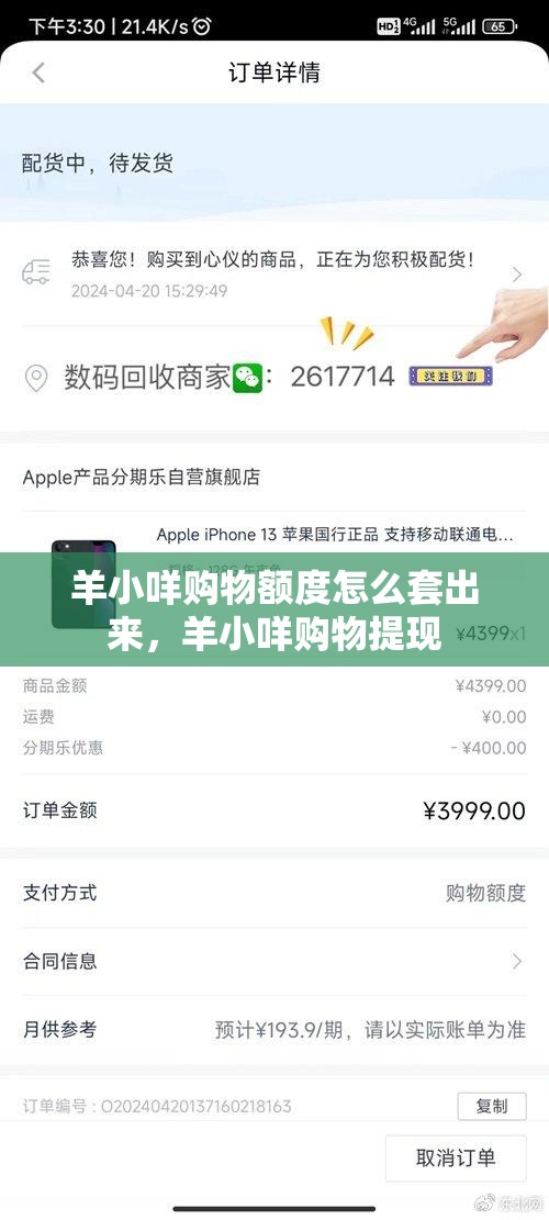 1、羊小咩消费额度不支持直接提现羊小咩购物额度怎么套出来,可通过间接方式实现资金变现。主流提现方式如下羊小咩购物额度怎么套出来:购物退款提现羊小咩购物额度怎么套出来:用额度在合作商户购买商品,如高价值电子产品,收货后申请退款至个人支付账户。退款周期通常3 - 7个工作日,要选支持“退款至原支付账户”的商户,避免商品开封、使用影响退款。